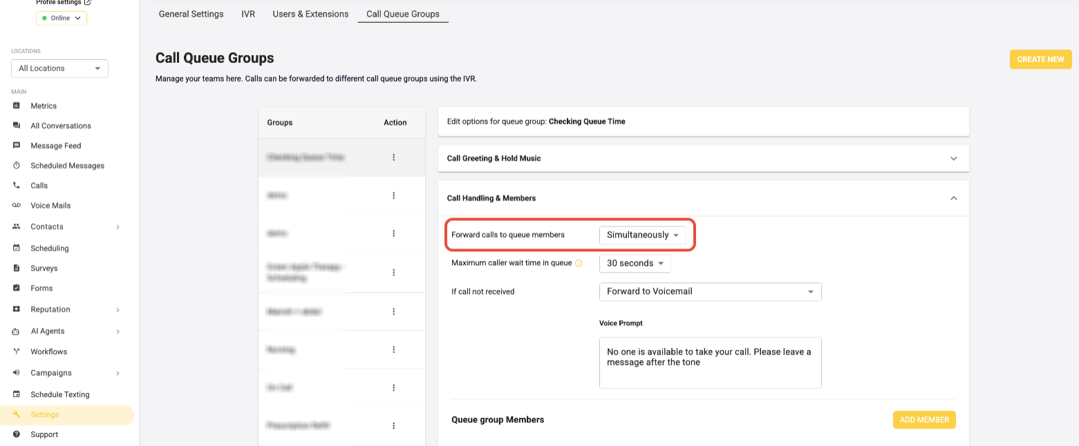 1. Forward Calls to Queue Members: You can choose how calls should ring team members: