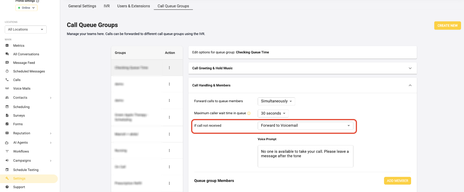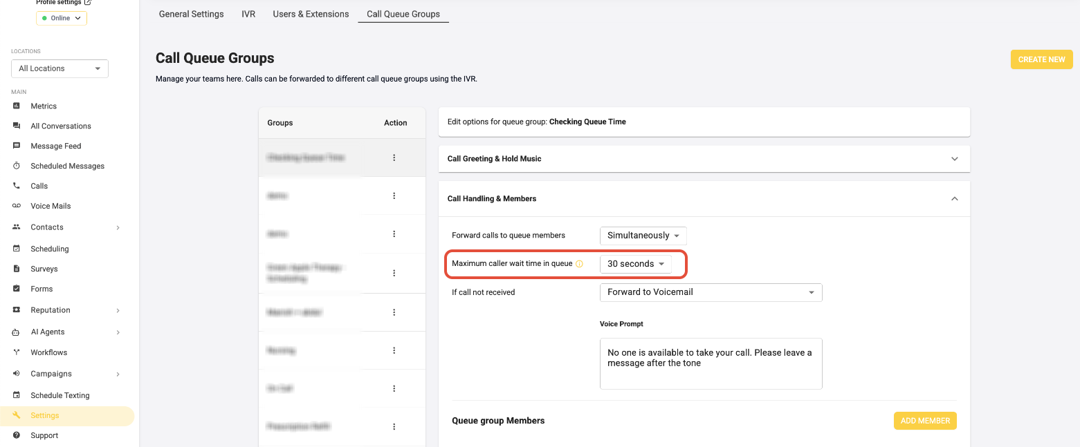 2. Maximum Caller Wait Time in Queue: You can set the maximum time a caller can wait before the system takes further action.